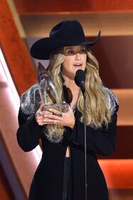 The 59th Annual CMA Awards - Show NASHVILLE, TENNESSEE - NOVEMBER 19: EDITORIAL USE ONLY Lainey Wilson accepts the Entertainer of the Year Award onstage during the 59th Annual CMA Awards at Bridgestone Arena on November 19, 2025 in Nashville, Tennessee. (Photo by Jason Kempin/Getty Images) (Jason Kempin/Getty Images)