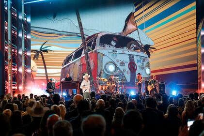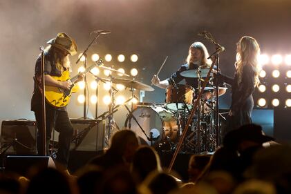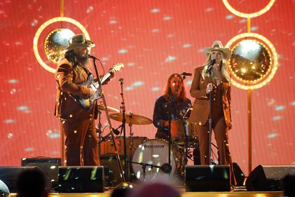 The 59th Annual CMA Awards - Show NASHVILLE, TENNESSEE - NOVEMBER 19: EDITORIAL USE ONLY (L-R) Chris Stapleton, Derek Mixon and Morgane Stapleton perform onstage during the 59th Annual CMA Awards at Bridgestone Arena on November 19, 2025 in Nashville, Tennessee. (Photo by Jason Kempin/Getty Images) (Jason Kempin/Getty Images)