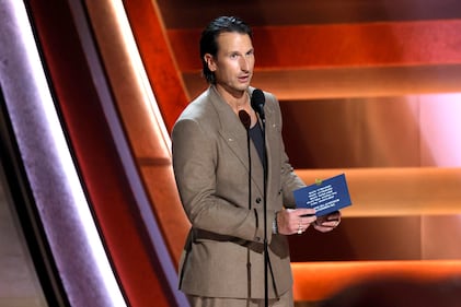 The 59th Annual CMA Awards - Show NASHVILLE, TENNESSEE - NOVEMBER 19: EDITORIAL USE ONLY Russell Dickerson speaks onstage during the 59th Annual CMA Awards at Bridgestone Arena on November 19, 2025 in Nashville, Tennessee. (Photo by Jason Kempin/Getty Images) (Jason Kempin/Getty Images)