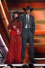 The 59th Annual CMA Awards - Show NASHVILLE, TENNESSEE - NOVEMBER 19: EDITORIAL USE ONLY (L-R) Chris Stapleton and Miranda Lambert perform onstage during the 59th Annual CMA Awards at Bridgestone Arena on November 19, 2025 in Nashville, Tennessee. (Photo by Jason Kempin/Getty Images) (Jason Kempin/Getty Images)