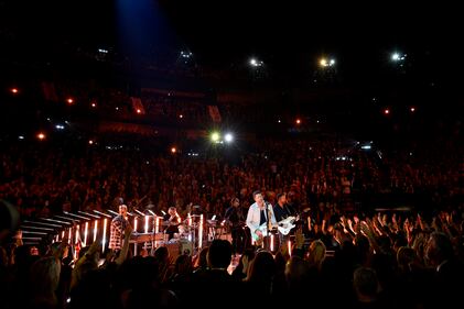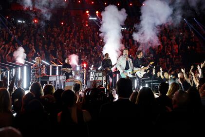 The 59th Annual CMA Awards - Show NASHVILLE, TENNESSEE - NOVEMBER 19: EDITORIAL USE ONLY (L-R) Trevor Rosen, Geoff Sprung, Matthew Ramsey and Brad Tursi of Old Dominion perform onstage during the 59th Annual CMA Awards at Bridgestone Arena on November 19, 2025 in Nashville, Tennessee. (Photo by Jason Kempin/Getty Images) (Jason Kempin/Getty Images)