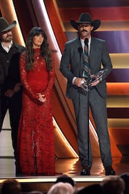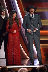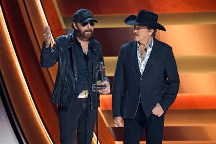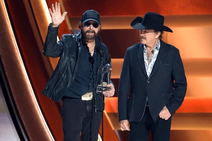 The 59th Annual CMA Awards - Show NASHVILLE, TENNESSEE - NOVEMBER 19: EDITORIAL USE ONLY (L-R) Ronnie Dunn and Kix Brooks of Brooks & Dunn accept the Vocal Duo of the Year Award onstage during the 59th Annual CMA Awards at Bridgestone Arena on November 19, 2025 in Nashville, Tennessee. (Photo by Jason Kempin/Getty Images) (Jason Kempin/Getty Images)