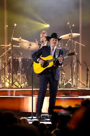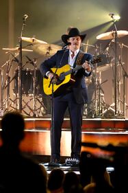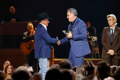 The 59th Annual CMA Awards - Show NASHVILLE, TENNESSEE - NOVEMBER 19: EDITORIAL USE ONLY George Strait presents Vince Gill with the Lifetime Achievement Award onstage during the 59th Annual CMA Awards at Bridgestone Arena on November 19, 2025 in Nashville, Tennessee. (Photo by Jason Kempin/Getty Images) (Jason Kempin/Getty Images)