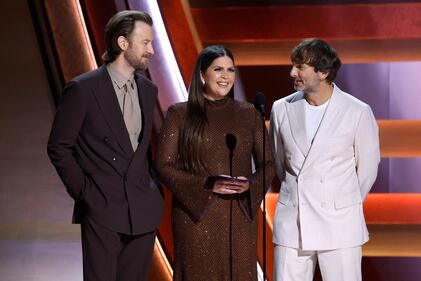 The 59th Annual CMA Awards - Show NASHVILLE, TENNESSEE - NOVEMBER 19: EDITORIAL USE ONLY (L-R) Charles Kelley, Hillary Scott and Dave Haywood of Lady A speak onstage during the 59th Annual CMA Awards at Bridgestone Arena on November 19, 2025 in Nashville, Tennessee. (Photo by Jason Kempin/Getty Images) (Jason Kempin/Getty Images)