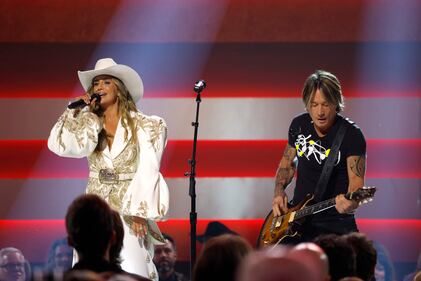 The 59th Annual CMA Awards - Show NASHVILLE, TENNESSEE - NOVEMBER 19: EDITORIAL USE ONLY (L-R) Lainey Wilson and Keith Urban perform onstage during the 59th Annual CMA Awards at Bridgestone Arena on November 19, 2025 in Nashville, Tennessee. (Photo by Jason Kempin/Getty Images) (Jason Kempin/Getty Images)