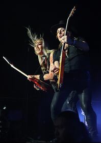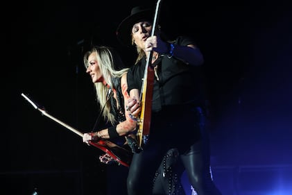 Alice Cooper And Judas Priest Perform At The Kia Forum INGLEWOOD, CALIFORNIA - OCTOBER 19: (L-R) Tommy Henriksen and Nita Strauss perform at The Kia Forum on October 19, 2025 in Inglewood, California. (Photo by Monica Schipper/Getty Images) (Monica Schipper/Getty Images)