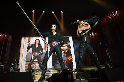 Alice Cooper And Judas Priest Perform At The Kia Forum INGLEWOOD, CALIFORNIA - OCTOBER 19: (L-R) Alice Cooper and Nita Strauss perform at The Kia Forum on October 19, 2025 in Inglewood, California. (Photo by Monica Schipper/Getty Images) (Monica Schipper/Getty Images)
