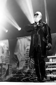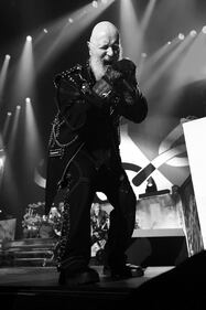 Alice Cooper And Judas Priest Perform At The Kia Forum INGLEWOOD, CALIFORNIA - OCTOBER 19: (EDITORS NOTE: Image has been converted to black and white). Rob Halford of Judas Priest performs at The Kia Forum on October 19, 2025 in Inglewood, California. (Photo by Monica Schipper/Getty Images) (Monica Schipper/Getty Images)