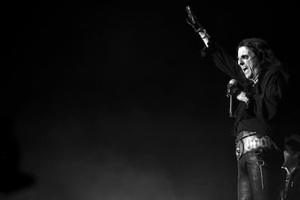 Alice Cooper And Judas Priest Perform At The Kia Forum INGLEWOOD, CALIFORNIA - OCTOBER 19: (EDITORS NOTE: Image has been converted to black and white). Alice Cooper performs at The Kia Forum on October 19, 2025 in Inglewood, California. (Photo by Monica Schipper/Getty Images) (Monica Schipper/Getty Images)