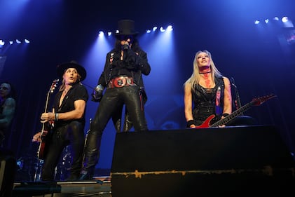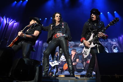 Alice Cooper And Judas Priest Perform At The Kia Forum INGLEWOOD, CALIFORNIA - OCTOBER 19: (L-R) Ryan Roxie, Alice Cooper, and Tommy Henriksen perform at The Kia Forum on October 19, 2025 in Inglewood, California. (Photo by Monica Schipper/Getty Images) (Monica Schipper/Getty Images)