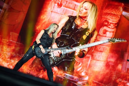 Alice Cooper And Judas Priest Perform At The Kia Forum INGLEWOOD, CALIFORNIA - OCTOBER 19: (L-R) Nita Strauss and Ryan Roxie perform at The Kia Forum on October 19, 2025 in Inglewood, California. (Photo by Monica Schipper/Getty Images) (Monica Schipper/Getty Images)