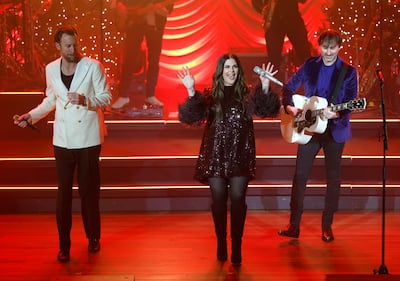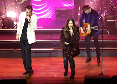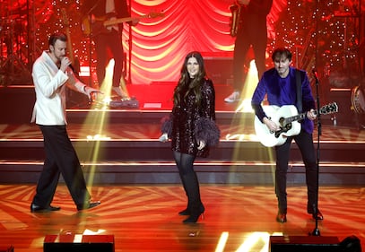 Lady A: This Winter's Night Tour 2025 - Nashville, TN NASHVILLE, TENNESSEE - DECEMBER 21: Charles Kelley, Hillary Scott and Dave Haywood of Lady A perform at the Ryman Auditorium on December 21, 2025 in Nashville, Tennessee. (Photo by Jason Kempin/Getty Images) (Jason Kempin/Getty Images)