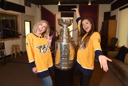 Maddie & Tae NHL Stanley Cup Photo Opportunity NASHVILLE, TN - APRIL 19: Madison Marlow and Taylor Dye of the group Maddie & Tae are seen with the Stanley Cup Trophy at Audio Productions on April 19, 2018 in Nashville, Tennessee. (Photo by Jason Kempin/Getty Images for NHL) (Jason Kempin/Getty Images for NHL)