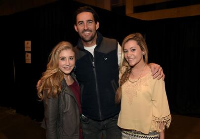 CMT Ultimate Kickoff Party - Rehearsals DALLAS, TX - JANUARY 09: Madison Marlow (L) and Tae Dye of Maddie & Tae pose with Jake Owen backstage during rehearsals for the CMT ULTIMATE KICKOFF PARTY LIVE FROM THE COLLEGE FOOTBALL PLAYOFF NATIONAL CHAMPIONSHIP on January 9, 2015 in Dallas, Texas. The 90-minute special premieres Friday, Jan. 9, at 9 p.m. ET on CMT. Hosted by Actor/comedian Rob Riggle, the live television special will feature a star studded lineup including Toby Keith, Lady Antebellum, Big & Rich, Brett Eldredge, Jake Owen, Maddie & Tae, Thomas Rhett and Aloe Blacc. (Photo by Rick Diamond/Getty Images for CMT) (Rick Diamond/Getty Images for CMT)