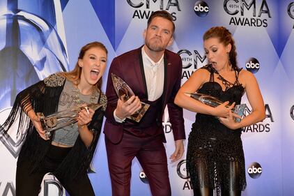 49th Annual CMA Awards - Press Room NASHVILLE, TN - NOVEMBER 04: Maddie Marlow and Tae Dye of musical duo Maddie & Tae and director TK McKamy (C) pose with their Video of the Year awards during the 49th annual CMA Awards at the Bridgestone Arena on November 4, 2015 in Nashville, Tennessee. (Photo by Jason Davis/Getty Images) (Jason Davis/Getty Images)