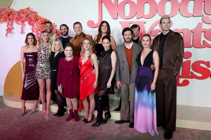 Premiere Of Netflix's "Nobody Wants This" Season 2 - Arrivals LOS ANGELES, CALIFORNIA - OCTOBER 16: (L-R) Justine Lupe, Emily Arlook, Miles Fowler, Stephanie Faracy, Arian Moayed, Tovah Feldshuh, Michael Hitchcock, Shiloh Bearman, Kristen Bell, D'Arcy Carden, Jackie Tohn, Joe Gillette, Adam Brody, Leighton Meester and Timothy Simons attend the Premiere of Netflix's "Nobody Wants This" Season 2 at The Egyptian Theatre Hollywood on October 16, 2025 in Los Angeles, California. (Photo by Kevin Winter/Getty Images) (Kevin Winter/Getty Images)