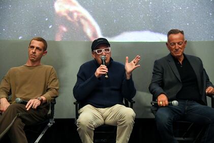 Springsteen: Deliver Me From Nowhere IMAX Special Screening And Q & A CENTURY CITY, CALIFORNIA - OCTOBER 21: (L-R) Jeremy Strong, Jon Landau, Bruce Springsteen, and Scott Cooper speak onstage during the Springsteen: Deliver Me From Nowhere IMAX Special Screening and Q & A at The AMC Century City 15 in Los Angeles, CA on October 21, 2025. (Photo by Alberto E. Rodriguez/Getty Images for 20th Century Studios ) (Alberto E. Rodriguez/Getty Images for 20th Century St)