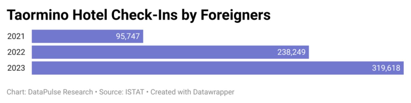 American viewers did more than research travel options in 2022 and 2023. As seen below, the number of Americans visiting Sicily in 2022 grew by more than 300% and continued to grow faster than the overall number of tourists in 2023. Could this be down to “White Lotus”? Anecdotal evidence suggests so.