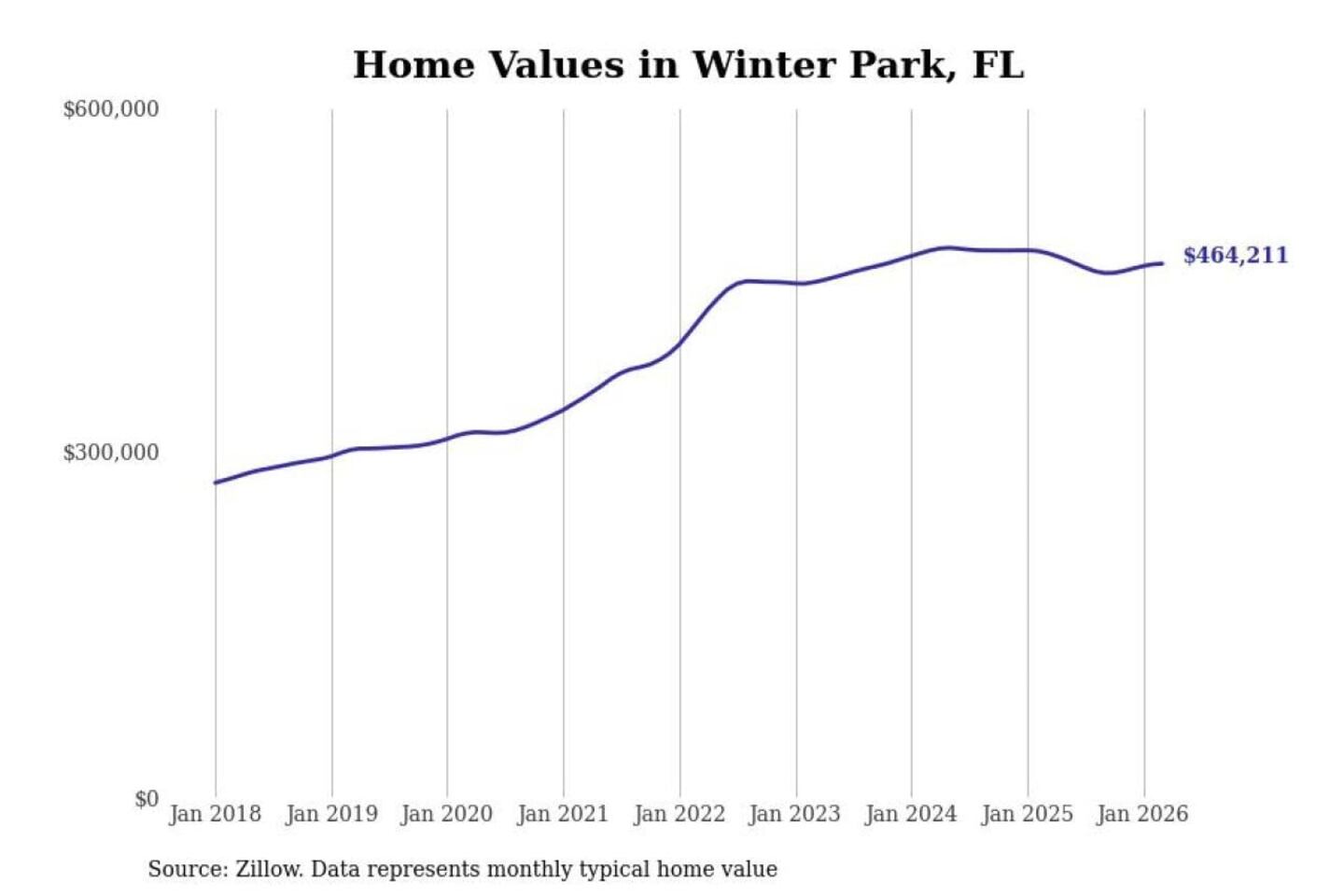Stacker compiled a list of cities with the most expensive homes in the Orlando-Kissimmee-Sanford, FL metro area using data from Zillow. Charts show the monthly typical home value since January 2018.
